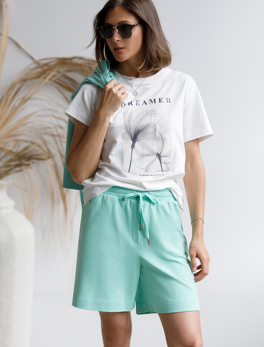 Совместные покупки Каменск-Уральский Женская одежда Шорты — Vilatte Шорты из тонкого премиального футера с эластаном D48.008 мятный