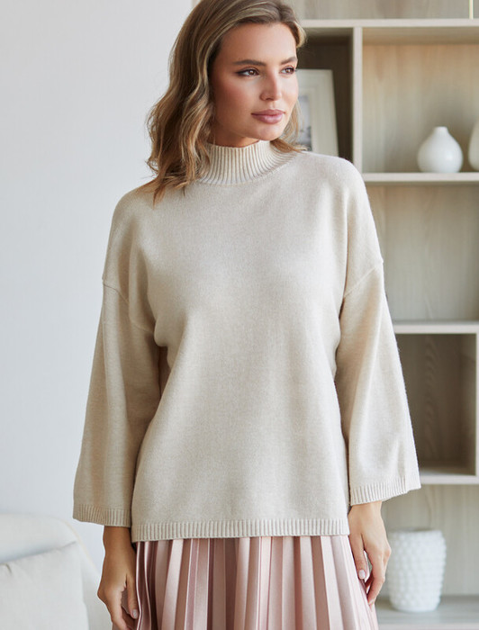 Совместные покупки Каменск-Уральский Женская одежда Джемперы, свитеры, водолазки — Vilatte Свитер из пряжи с кашемиром D34.205 овсяный меланж