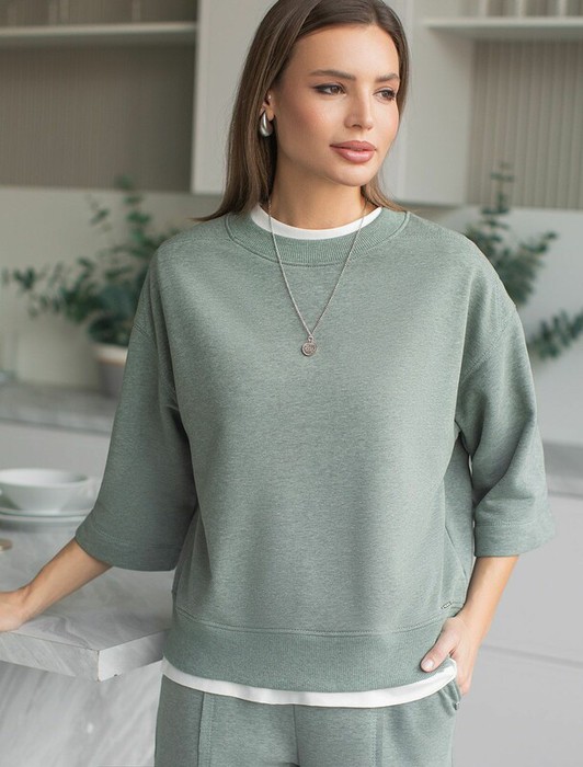 Совместные покупки Каменск-Уральский Женская одежда Джемперы, свитеры, водолазки — Vilatte Свитшот свободный из петельчатого футера двухнитки с эластаном D49.139 о