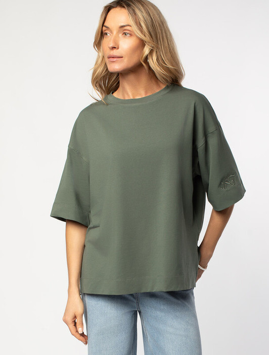 Совместные покупки Каменск-Уральский Женская одежда Футболки — Vilatte Свободная футболка из премиального хлопка D49.094 хаки
