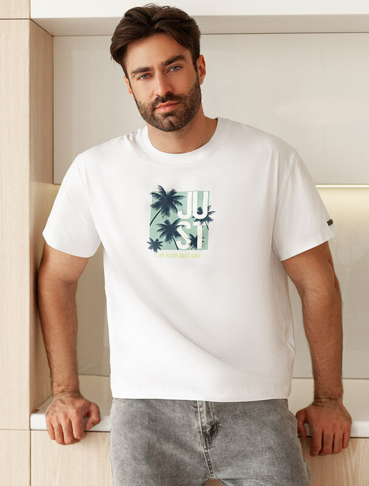 Совместные покупки Каменск-Уральский Мужская одежда Футболки — Vilatte Свободная футболка с авторским принтом U49.048 белый_just