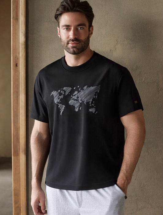 Совместные покупки Каменск-Уральский Мужская одежда Футболки — Vilatte Свободная футболка с авторским принтом U49.048 черный_карта