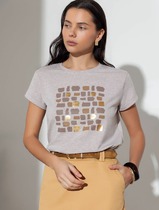 Vilatte Нарядная футболка с принтом фольгой из премиального хлопка с эластаном D