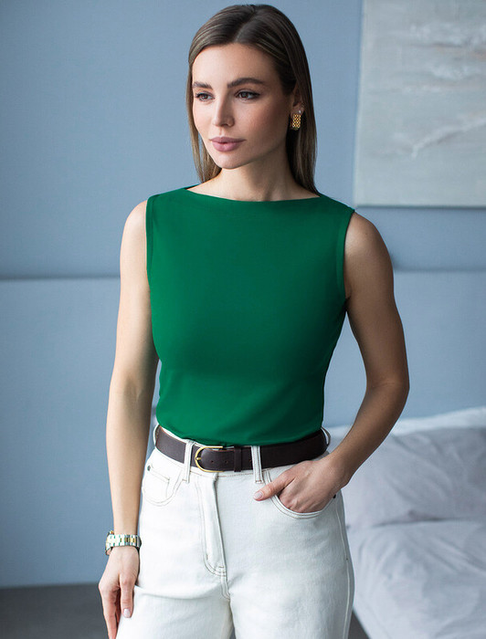 Совместные покупки Каменск-Уральский Женская одежда Майки, топы — Vilatte Топ из премиального хлопка с эластаном D43.201 зеленый