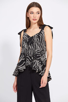 Топ из тонкого жаккарда выполнен из вискозы. Вертикальный вывязанный принт визуально стройнит и вытягивает силуэт. Добавление в состав ПЭ способствует легкости и износостойкости изделия. Мягкая пряжа приятно ощущается на теле и дарит настоящий комфорт в теплое время года. Можно стилизовать изделие в многослойных образах как жилет.