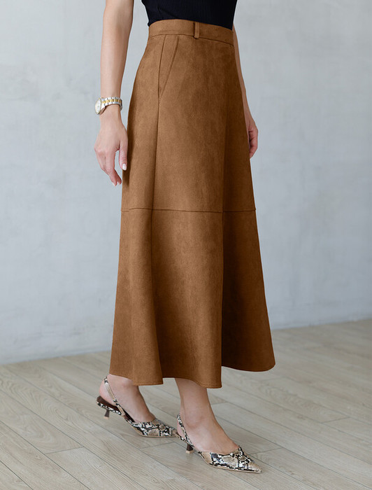 22.03 Vilatte Юбка четырехклинка из искусственной замши D26.185 охра