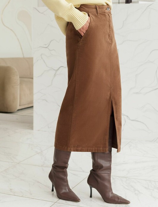 — 22.03 Vilatte Юбка из эластичного микро-вельвета D26.189 светло-кофейный