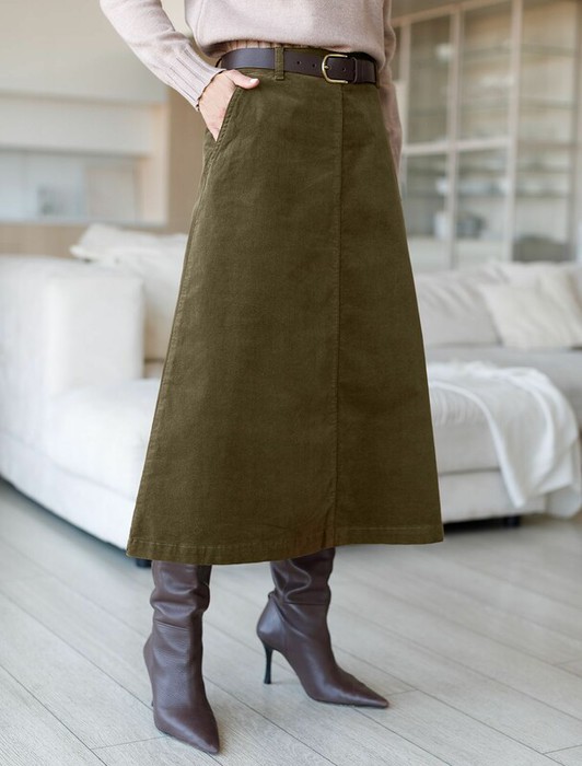 Совместные покупки Каменск-Уральский Женская одежда Юбки — Vilatte Юбка из эластичного микро-вельвета D26.200 хаки