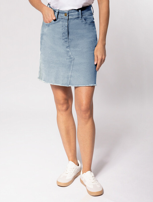 22.03 Vilatte Юбка из супер-эластичного денима с необработанным краем D56.043 г
