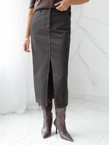 Vilatte Юбка с разрезом из эластичной эко-кожи D26.454 черный