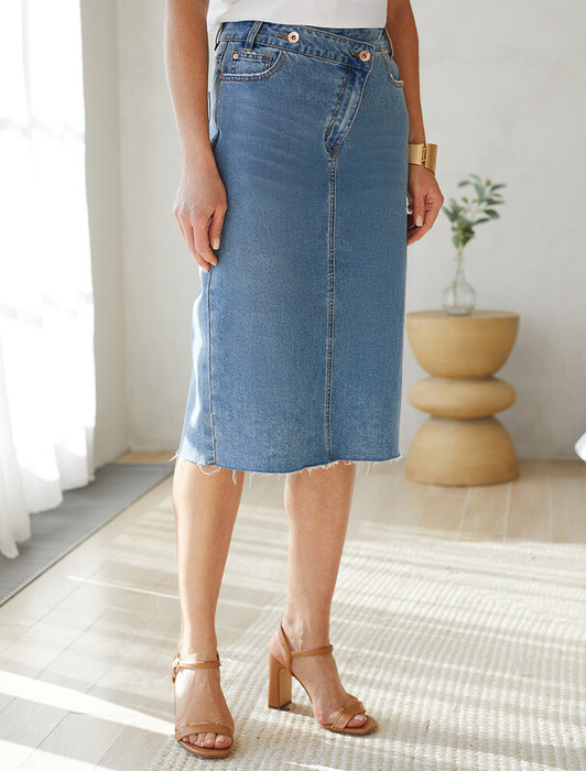 — 27.03 Vilatte Юбка с ассиметричной застежкой из эластичного денима D56.119 сини