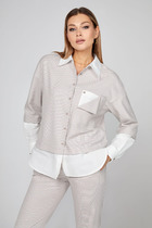 Vilatte Укороченная блузка из формоустойчивого хлопка D29.272 белый-голубой