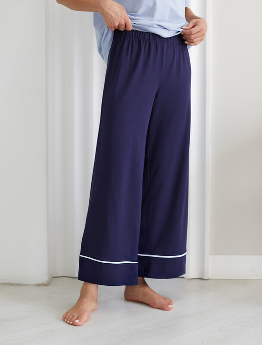Контрастный кант по низу добавляет стильный акцент и возможность сочетать с белыми футболками нашего бренда. Эти брючки идеально подойдут тем, кто ищет стильное решение с учетом комфорта и удобства, в них вы будете женственны и утонченны даже в домашней обстановке.