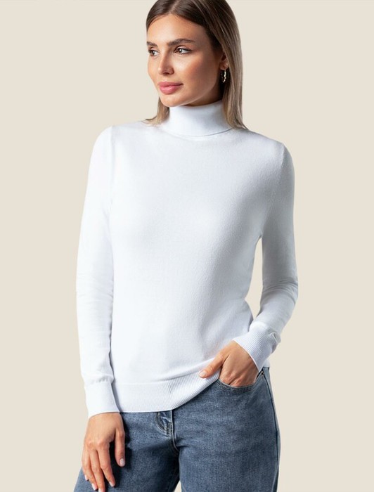 Совместные покупки Каменск-Уральский Женская одежда Джемперы, свитеры, водолазки — Vilatte Водолазка тонкой вязки из хлопка с нейлоном D34.122 белый