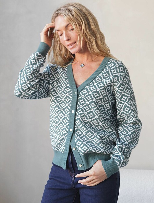 Совместные покупки Каменск-Уральский Женская одежда Кофты, кардиганы — 27.03 Vilatte Жакет тонкой и эластичной жаккардовой вязки D31.388 полынный