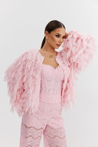 Жакет жаккардовой вязки выполнен из нежной пряжи на основе вискозы с добавлением кашемира. Модель с круглым вырезом и золотистой фурнитурой выглядит дорого и роскошно, приятно ощущается на теле и поддерживает комфортный микроклимат. Совет стилиста: сочетайте с однотонными брюками, юбкой, платьем или джинсами. Можно использовать в комплекте total-look с D39.362 и с платьем D32.110