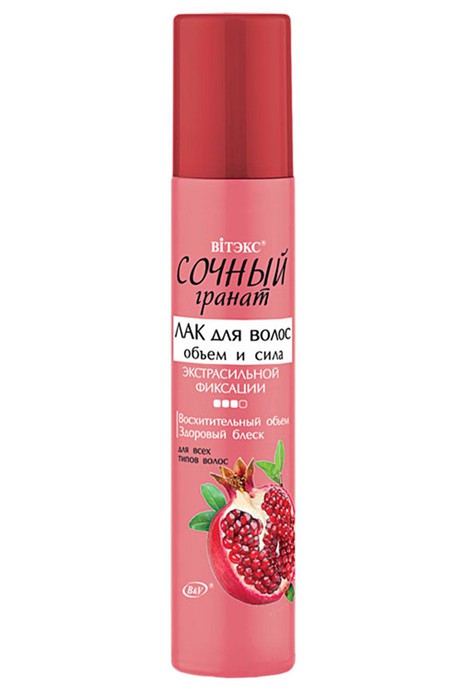 Лак для волос СОЧНЫЙ ГРАНАТ Объем и сила Экстрасильной фиксации это - восхитительный объем, здоровый блеск волос;