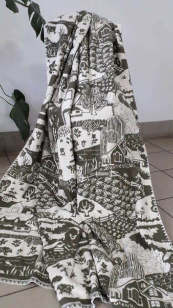 ВЛАДЛЕН Одеяло хлопковое байковое Сельский Пейзаж хаки