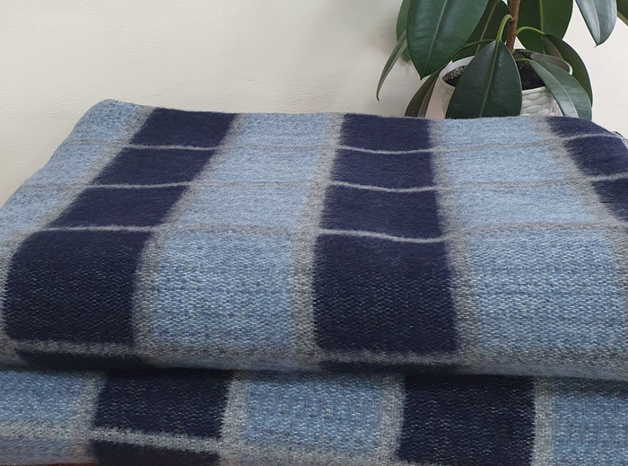 Совместные покупки Каменск-Уральский Товары для дома и дачи Подушки, одеяла — ВЛАДЛЕН Одеяло полушерстяное (50% Шерсть) Клетка Серо-Синяя-с Голубым