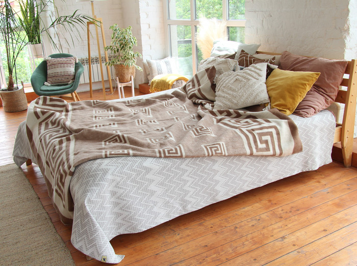 ВЛАДЛЕН Одеяло полушерстяное в канте (40% Шерсть) Греция бежевая 1-2