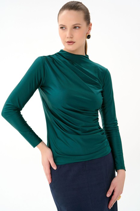 Этот лонгслив станет универсальной базой в гардеробе, добавляя образам женственность и аккуратный акцент за счёт выразительной драпировки и насыщенного цвета