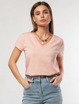 Vilatte Футболка из премиального хлопка с V-образным вырезом D49.109 пудра