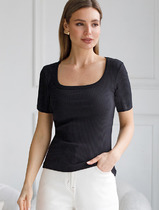 21.04 Vilatte Футболка из трикотажа в широкий рубчик D49.066 черный