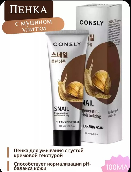 Совместные покупки Каменск-Уральский Косметика и парфюмерия Средства для умывания — Восстанавливающая кремовая пенка для умывания с муцином улитки Consly