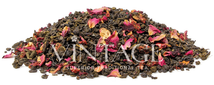 Клубника, ваниль, розы красной лепестки, чай зеленый Китай ганпаудер, чай зеленый Китай зеленые спирали