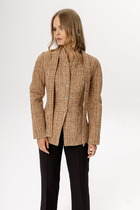 Летний жакет прямого силуэта с укороченными рукавами рубашечного кроя подходит для девушек и женщин любого возраста. Этот однобортный пиджак на пуговицах с отложным воротником английского типа выполнен из смесовой льняной ткани. Накладные карманы гармонично дополняют сдержанный стиль модели. Талию, при желании, можно подчеркнуть поясом. Носить такой жакет можно, практически, с любой одеждой; даже в строгих офисных луках этот легкий летний пиджак будет отлично сочетаться с платьем, юбкой, брюками или шортами. Шероховатая поверхность льна - признак его натуральности; после первой стирки ткань может стать мягче.