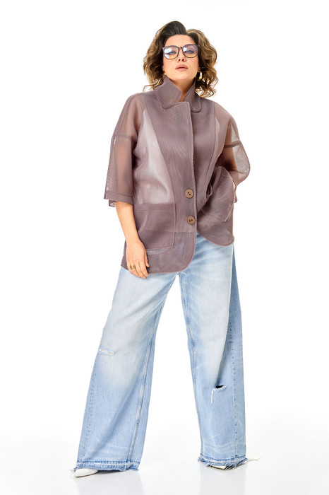 Жакет женский из оригинального трикотажного полотна, напоминающего объемные соты, станет отличным дополнением к вашему гардеробу. Модель прямого силуэта со спущенным рукавом, рукав 3/4 длины, застежка на пеллю и пуговицу, воротник пиждачного типа. По полочке идут накладные карманы, низ фигурный. Все шва и срезы не обработаны. Длина рукава: (50-66)-28см. Длина по спинке : (50-54)-76см., (56-60)-78см, (62-66)-80 см