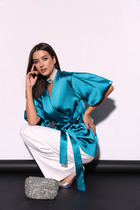 При съемке в образе использовали брюки 1223 и рубашка 1203 от Анелли