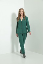 Однобортный, с отложным воротником и лацканами, с прорезными карманами с клапаном и нагрудным не функциональным карманом. Втачные рукава со шлицей.