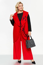 Жакет двубортный, полуприталленого силуэта. Выполнен из костюмной ткани кофейного цвета. Характеристика: отложной воротник с остроугольными геометрическими лацканами, вточной рукав, подклад, подплечники, талиевые выточки по переду, отрезная боковая планка, по переду изделия карманы-листочки, талиевые вытачки по спинке, брендированная подкладка. Длина рукава 24 см. Длина спинки от края горловины 72 см.