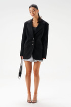 Жакет свободного кроя, выполнен из полотна бежевого цвета. Характеристики: воротник отложной, застёжка центральная на петли пуговицы, брендированный подклад (стеганный и утепленный), по переду изделия прорези с карманами, на груди брендированная нашивка, отрезная спинка, вточной широкий рукав, спущен, заканчивается широким манжетом,по низу изделия резинка. Длина по спинке от края горловины 70 см, длина рукава от края горловины 81см.