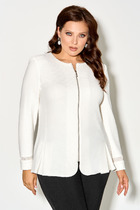Жакет однобортный классического силуэта, на подкладке. Борта по низу имеют закругленную форму.Рукав втачной, прямой.Обработаны 2 кармана с клапанами и один карман с листочкой