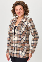Жакет женский удлиненный, из экокожи, на подкладке, полуприлегающего силуэта с центральной бортовой застежкой на пуговицы до линии перегиба лацкана. Спереди рельефные швы от плечевого шва, отрезной бочок и карман с клапаном. Спинка с рельефами от плечевого шва. Рукав втачной, двухшовный. Воротник пиджачного типа. Длина рукава 62 см, длина по спинке 66 см.