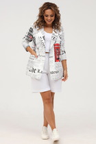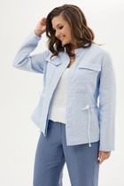 Жакет женский удлиненный, из текстильной ткани, на подкладке, полуприлегающего силуэта с центральной бортовой застежкой на пуговицы до линии перегиба лацкана. Спереди рельефные швы от плечевого шва, отрезной бочок и карман с клапаном. Спинка с рельефами от плечевого шва. Рукав втачной, двухшовный, по низу рукава обработана шлица на петли-пуговицы. Воротник пиджачного типа. Длина по спинке 66 см, длина рукава 62 см. К жакету рекомендуем брюки 596-арт. 2 79 22