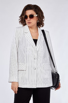 Жакет женский удлиненный, из текстильной ткани, на подкладке, полуприлегающего силуэта с центральной бортовой застежкой на пуговицы до линии перегиба лацкана. Спереди рельефные швы от плечевого шва, отрезной бочок и карман с клапаном. Спинка с рельефами от плечевого шва. Рукав втачной, двухшовный, по низу рукава обработана шлица на петли-пуговицы. Воротник пиджачного типа. Длина по спинке 66 см, длина рукава 62 см К жакету рекомендуем брюки 596-арт. 2 79 22.