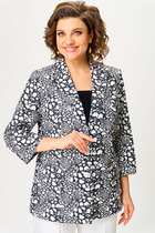 Жакет женский удлиненный, полуприлегающего силуэта с центральной бортовой застежкой на пуговицы до линии перегиба лацкана. Спереди рельефные швы от плечевого шва, отрезной бочок и карман с клапаном. Спинка с рельефами от плечевого шва. Рукав втачной, двухшовный, 3/4, с небольшим разрезом в локтевом шве. Воротник пиджачного типа. Жакет выполнен из джинсовой ткани. Перед жакета на подкладке. Длина рукава 50 см, длина по спинке 68 см