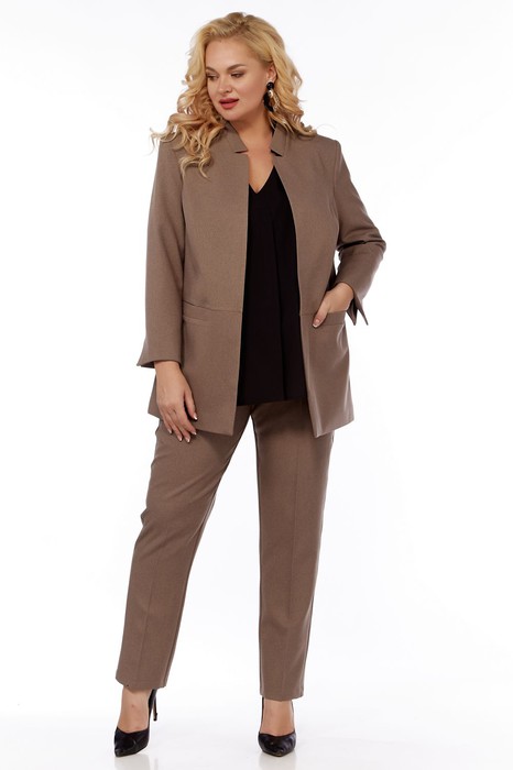 Жакет женский полуприлегающего силуэта с декоративным подрезом по переду полочки, рукав втачной 3/4 с разрезом в локтевом шве, без воротника застежка на крючок,карманы листочки обработаны в подрезе.