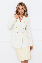 Втачные рукава дополнены шлицей в нижней части локтевого шва с четырьмя пуговицами и петлями, что обеспечивает удобство движений и придаёт жакету изысканный акцент. Отложной воротник и лацканы создают классический, деловой силуэт, идеально подходящий как для офиса, так и для особых случаев.