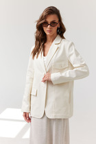 Жакет женский "Плеяна" выполнен из твидовой ткани с блестящей нитью. Жакет на подкладке полуприлегающего силуэта, воротник отложной, по борту лацканы, низ борта закругленный, застежка однобортная на три пуговицы. По полочке - рельеф и накладной карман, по краю кармана трепка. Края воротника, лацканов и борта обработаны трепкой. По спинке - рельефы, рукав втачной двухшовный. Жакет нарядный отличный вариант для праздников и повседневной носки. Нарядный с легкой люрексовой ниткой добавит вам нарядности и элегантности!