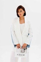 Стильный удлиненный бомбер свободного силуэта выполнен из органзы. Рукава со спущенной линией плеча; по переду функциональные прорезные карманы; застежка на молнию. Бомбер дополнен трикотажными довязами. Изделие полностью соответсвует заявленному размеру. Пожалуйста, пользуйтесть таблицей замеров готового изделия.