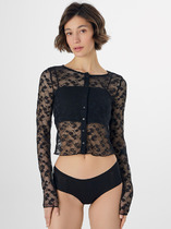 Жакет с центральной двубортной застежкой на петли и пуговицы, втачным воротником и отложными лацканами пиджачного типа. На полочках расположены прорезные карманы с клапаном и двумя обтачками. Полочки с рельефами, выходящими из проймы, талиевой вытачкой. Спинка со средним швом, рельефами, выходящими из проймы. Рукав втачной, длинный, двухшовный.