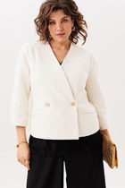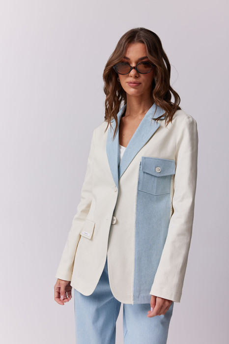 Жакет женский прямого силуэта с центральной бортовой застежкой на петли и пуговицы. По переду обработаны нагрудные вытачки, рельефы, справа прорезной карман с клапаном и листочкой (клапан декорирован нашивкой). Слева расположена настрочная «вытрепанная» деталь с накладным карманом и клапаном, застегивающимся на петлю и пуговицу. Спинка с «вытрепанной» кокеткой, на которой расположена декоративная нашивка. Нижняя часть спинки с отстрочными «вытрепанными» рельефами. Рукав длинный 2-х шовный отстрочной, с имитацией шлицы, декорированной пуговицами. Воротник пиджачного типа с отрезной стойкой. Воротник, подборт и декоративная «вытрепанная» деталь с накладным карманом и клапаном выполнены из ткани-компаньона. Декоративные элементы и фурнитура могут отличаться от заявленных на фото. Цвет материала может отличаться по тону в зависимости от настроек вашего монитора!