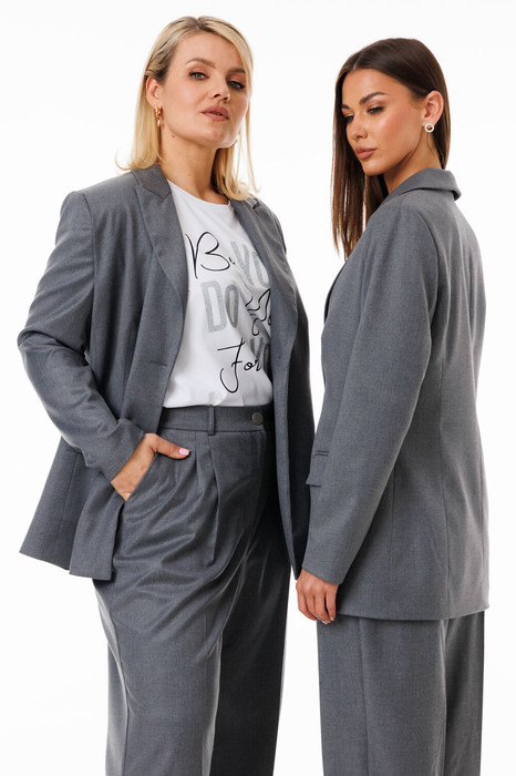 Этот жакет — универсальное решение для тех, кто ценит многослойность в стиле. Сочетайте его сбрюками для офисного лука, наденьте поверх платья для вечернего выхода или дополните джинсами и базовой футболкой для повседневного шика. Изготовленный из плотного, но мягкого материала, он гарантирует комфорт в течение всего дня, сохраняя безупречную форму.