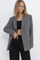 Жакет однобортный умеренного объема, приталенного силуэта. Силуэт изделия создается за счет отрезных бочков на спинке и полочке, а также за счет среднего шва и плечевых вытачек на спинке. На полочке нагрудная вытачка переведена в плечевой шов. Плечевой пояс расширен и поддерживается плечевыми накладками. Рукав втачной, длинный, двухшовный. Воротник отложной с отрезной стойкой, пиджачного типа. Застежка на уровне линии талии на одну петлю и пуговицу. Жакет полностью обработан притачной подкладкой. Длина изделия до середины бедер.  Фурнитура и материалы отделки могут незначительно отличаться от тех, что на фотографи.Рост фотомодели 175 см. Размер у фотомодели – 44.