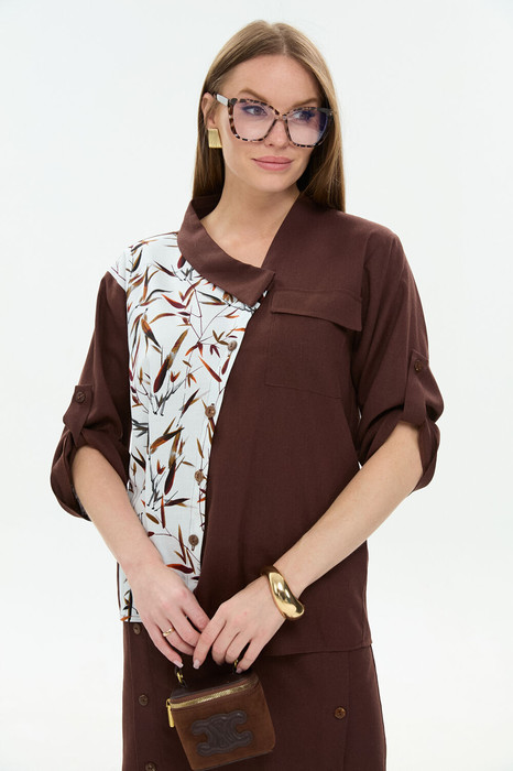 Жакет NIKVA н902-15 шоколад и листья мультиколор