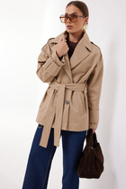 Жакет рубашечного типа прямого силуэта с асимметричным низом. Рукав втачной со спущенной линией плеча, фиксируется на пату. Застежка центральная на петли и пуговицы, смещённая по косой. На левой полочке накладной карман с клапаном. Воротник отложной на стойке до половины спинки.